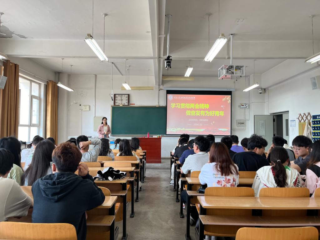 为深入学习贯彻2024年全国两会精神,明确青年学生的责任和使命担当,增强对中华民族伟大复兴的信心,不断提升自身的政治素质,2024年5月10日,21030443和20030Z01班在14201H召开“学习贯彻两会精神,做奋发有为好青年”主题班会,班会由人生导师材料科学与工程学院教学科科长王志云老师主讲,21030443班班主任李静老师主持。