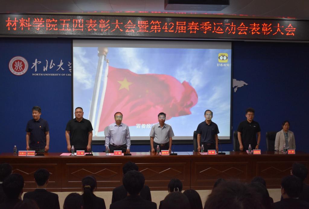 为学习贯彻习近平新时代中国特色社会主义思想,赓续五四精神,学习先进典型,激励广大青年挺膺担当,全面推进学院高质量发展,5月14日下午,材料科学与工程学院在瑾瑜国际会议中心隆重召开五四表彰大会暨第42届春季运动会表彰大会。院党委书记廖海洪、院长王强、科研副院长刘斌、教学副院长王超、青年教师代表闫钊鸣、院团委书记郝诗韵、复合材料与工程学生党支部书记李静出席表彰大会。