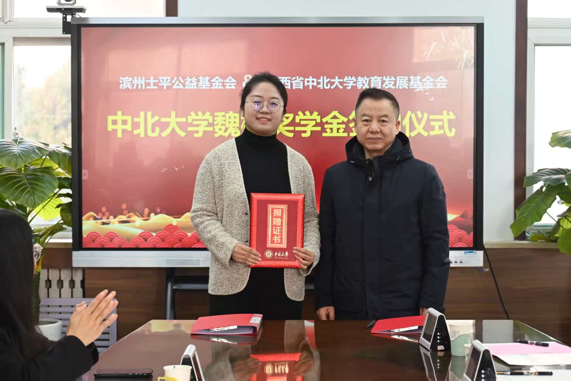 12月10日,“中北大学魏桥奖学金”签约仪式在我校材料科学与工程学院会议室举行。校党委书记张晓永、再生资源产业技术创新战略联盟副理事长兼秘书长尚辉良、山东宏顺循环科技有限公司董事长兼总经理王景坤、士平公益基金会执行副秘书长隋亚妮出席仪式。学校教育发展基金会、国内交流合作部及材料科学与工程学院负责人和师生代表共同见证签约。