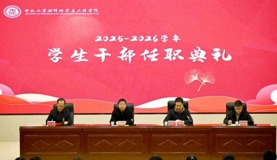 2025年12月22日下午,材料学院学生干部任职聘任仪式在瑾瑜国际会议中心顺利举行。学院党委书记廖海洪等领导及辅导员、新任学生干部、学生党员代表参会,活动由院党委副书记辛振东主持。本次活动以党建为引领,旨在通过任职仪式强化学生干部责任意识与服务能力,为深化学院学生管理工作筑牢根基。