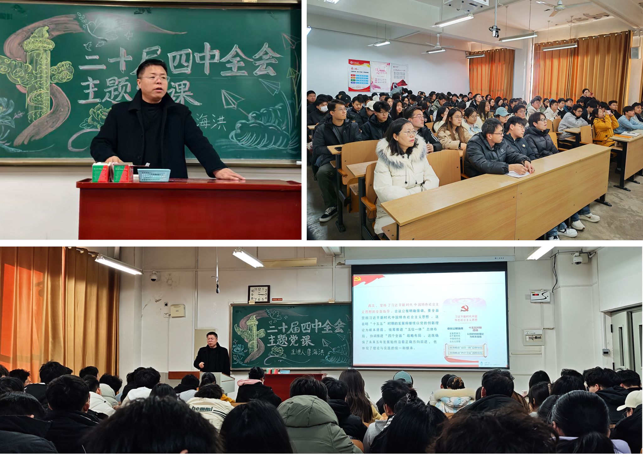 2026年1月6日下午,材料学院党委书记廖海洪走进14201教室,为学院无机非金属材料工程学生党支部、复合材料与工程学生党支部及研究生材料加工四支部的110余名学生党员,讲授了一堂紧扣党的二十届四中全会精神、兼具理论深度与实践温度的主题党课。