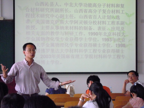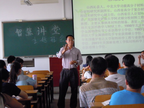 为充分发挥班会在研究生思想政治教育中的作用,使班会成为研究生思想政治教育的主要阵地,成为班级建设的主要载体,材料科学与工程学院在研究生中开展“智慧讲堂”主题班会。2014年5月28日下午3:00在14402教室, 美国德克萨斯大学阿灵顿分校材料工程学院郝耀武副教授来到材料科学与工程学院2013级研究生当中,为研究生开了生动幽默的一堂主题班会。会上,郝教授从如何制作一份精美的PPT和如何学好英语这两个方面为我们的学习和科研工作进行指导。郝教授的讲解认真、细致,使同学们获益匪浅。随后,同学们还和郝教授进行了热烈的讨论。通过这次主题班会,同学们学到了很多,也深深的被郝教授科研上的严肃与追求,生活上的幽默与洒脱所打动,主题班会取得了非常好的效果。