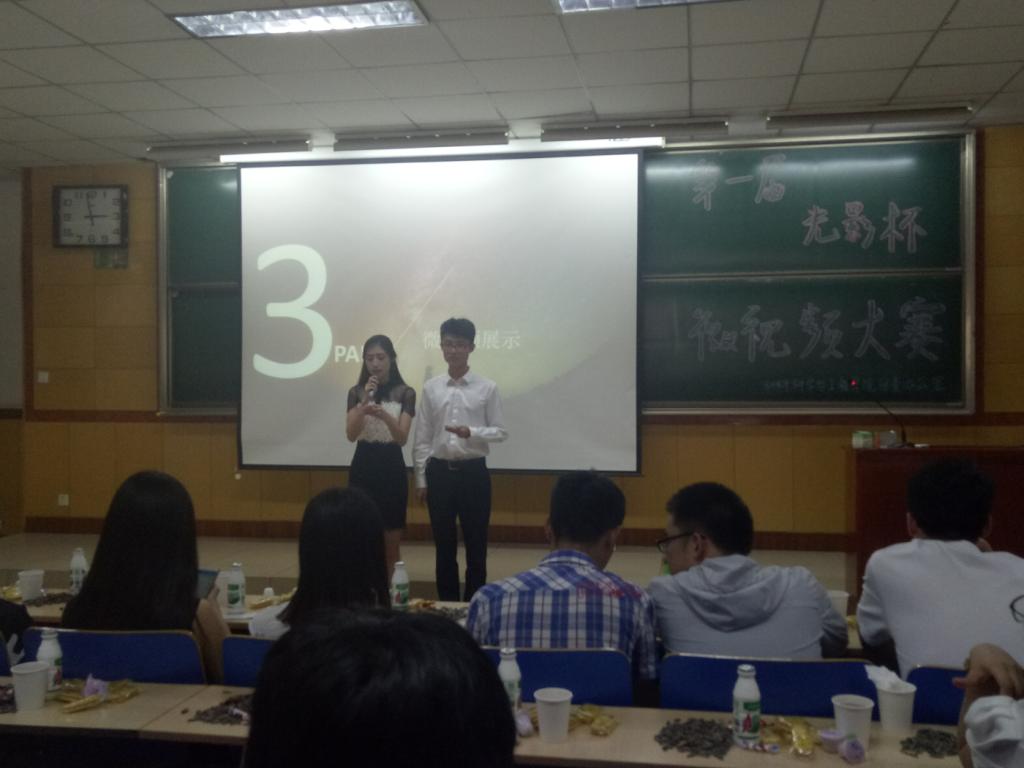 5月20日下午,材料科学与工程学院团委办公室在09102教室举办了第一届光影杯,及"中国梦,青春梦"为主题的微视频大赛。本次比赛有幸邀请到我院学生科郝小军老师,校学生会办公室主任李学坤,机电工程学院学生会办公室主任马佳伟,机电工程学院团委办公室主任郭光光等各院办公室主任以及我院学生会主席孙大堡,公寓科主任史林坤,文体副主席樊洪智,分科协主席苏立等各部门部长出席。