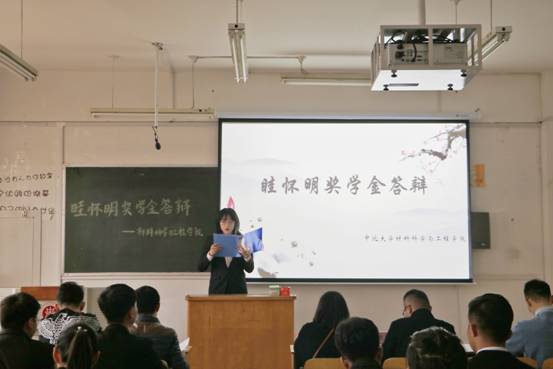 冬风料峭,寒枝上头。2020年11月15日,中北大学材料科学与工程学院举行了眭怀明奖学金的答辩活动。此次活动由扬州峰明光电新材料有限公司副总经理张为平,学院殷炳叶老师、郝诗韵老师、贾越老师、田晋忠老师、鲁若鹏老师、刘琴老师、褚嫱老师、张维叶老师共八人列席会议担任评委。研究生和本科生共35人参加答辩。