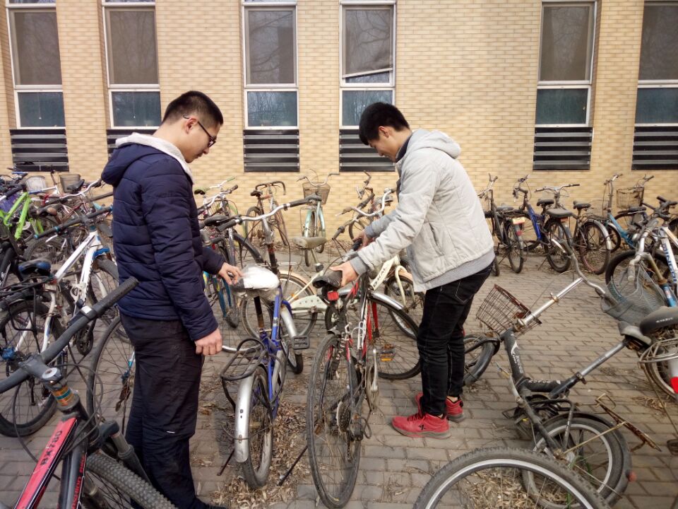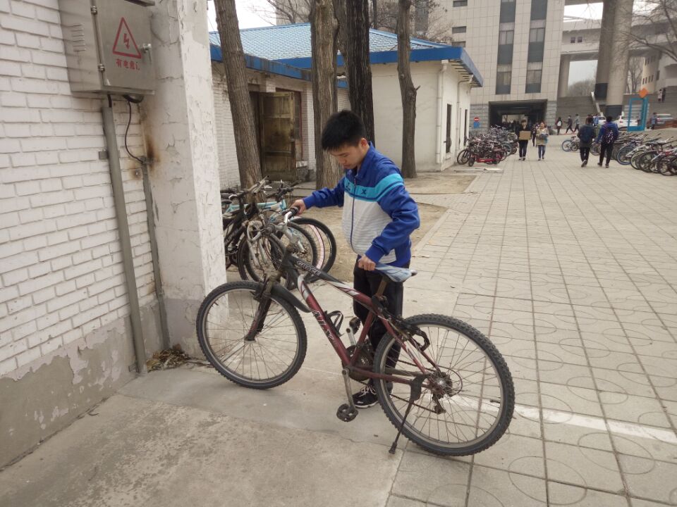 16030141班以宿舍为单位,一至两个宿舍为一组,有班委带队分别在十号楼外、文韬二楼下,图书馆外、超市前等多地停放自行车的地方整理车辆。一辆辆倒地的自行车被扶起,一辆辆凌乱放置的自行车被摆放整齐。赠人玫瑰,手留余香。如此简单的行为不仅给校园带来一丝整洁,看着一排排排放整齐的自行车,16030141班也心生愉悦,感受到了参加青志活动的乐趣。