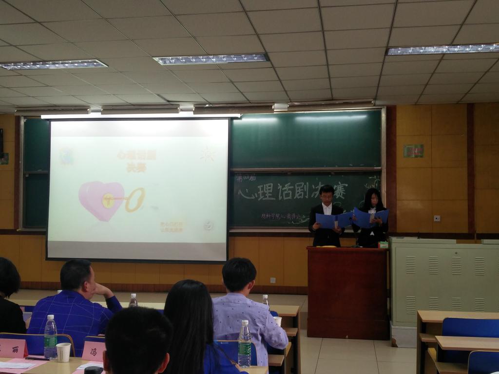 2017年5月7日下午两点半,材料科学与工程学院第四届心理话剧决赛在09202H火热开赛。到场嘉宾有校党委书记薛书记、政务处长孙华东、学生处长邱建国、学生处副处长顾宁,以及材料科学与工程学院副书记廖海宏书记、毋登辉老师、材料科学与工程学院学生科各位老师,以及材料科学与工程学院、经济与管理学院、人文社会科学学院、软件学院心晴驿站站长、十二个参赛队伍队员,此外,本次活动也吸引了大批同学前来观看。