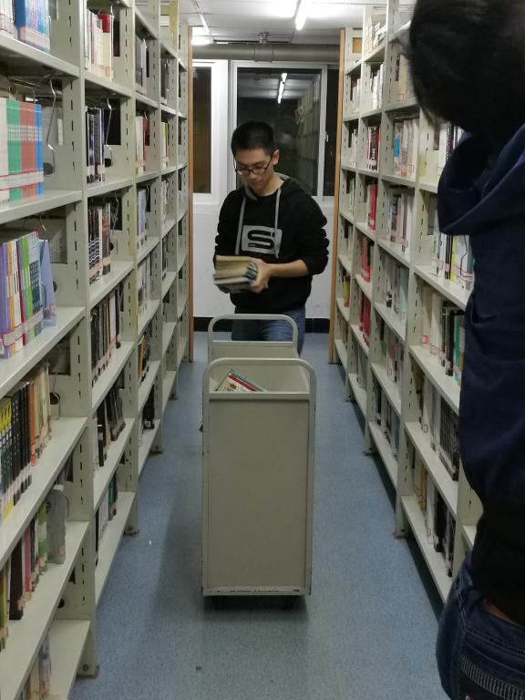活动开始前, 同学们列队整齐的进入图书馆。图书馆助理将同学们分为四组,分别在不同楼层进行整理。志愿者们回收旧书,将旧书集中放入地下室储存;整理书架,将图书摆放整齐并清除书架上的异物; 清点书籍,确定书架上书的数量。在大家的齐心协力下,圆满完成了此次志愿服务。