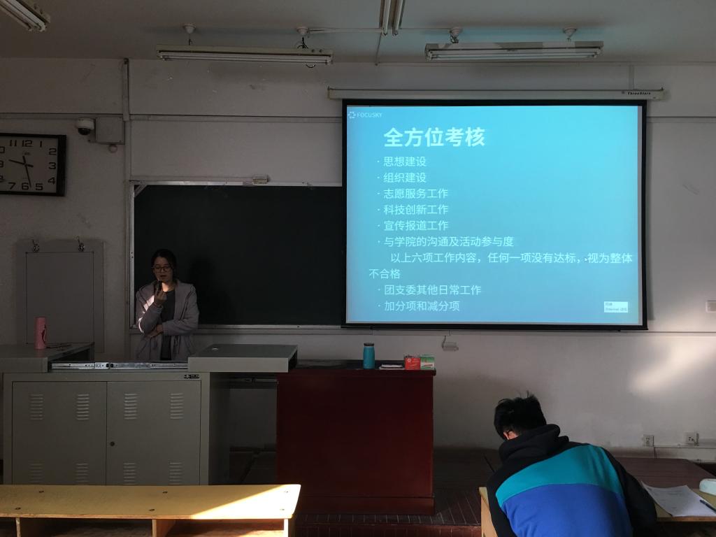 2017年11月5日上午九点整,材料科学与工程学院大一全体团支委成员在10307H教室迎来了第二次团支委培训会议。我院第一团总支书记于鑫,第二团总支书记聂杨峻峰出席了此次会议。