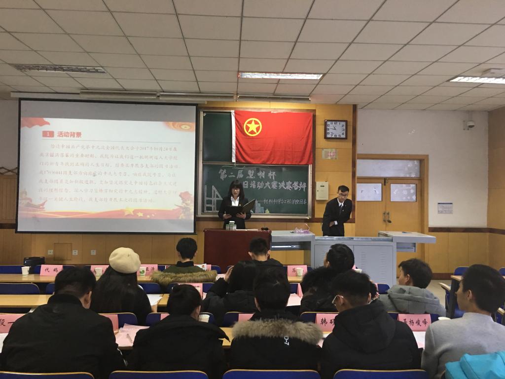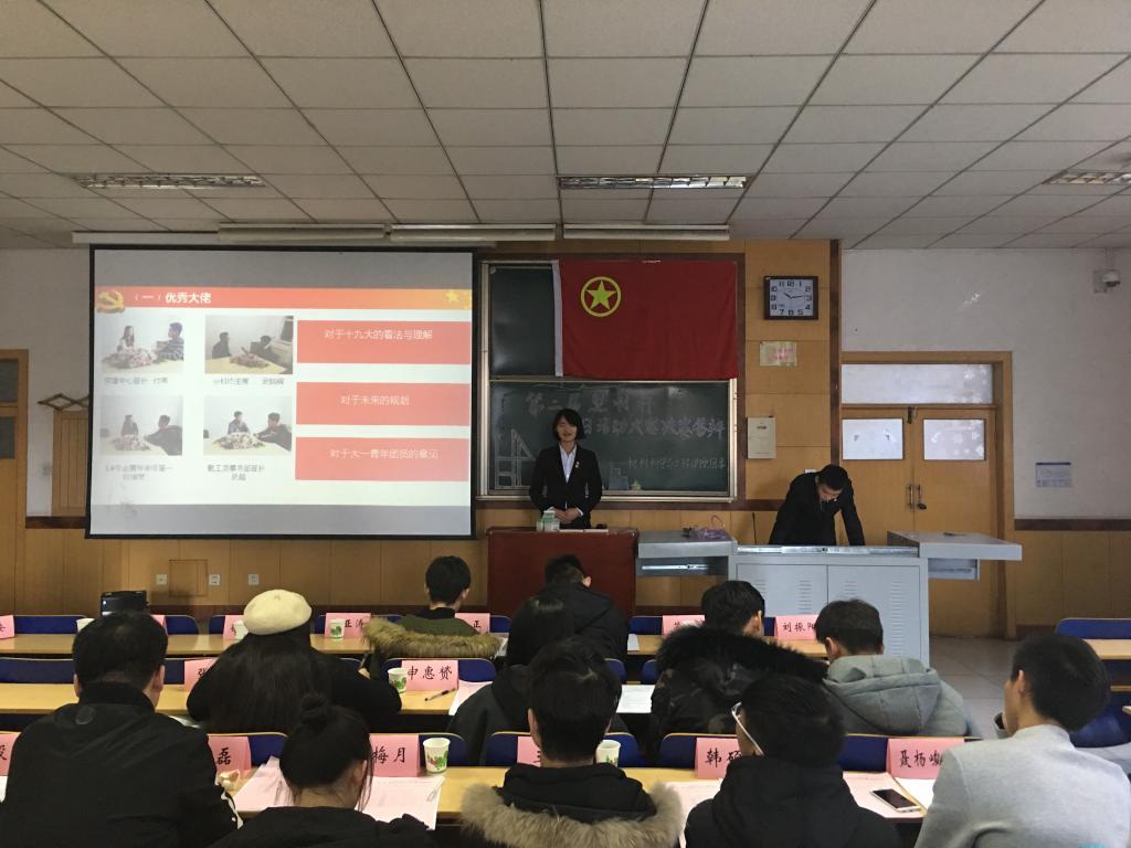 12月10日,由我材料科学与工程学院组织部举办的“慧材杯”团日活动答辩决赛在09103教室成功举办。大一大二分别以“青春献礼十九大,大学生涯我规划”和“不忘初心跟党走,青春献礼十九大”展开叙述。