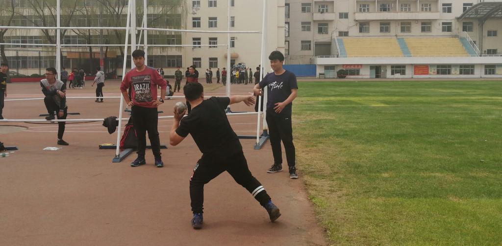 为迎接我校即将到来的大学生春季运动会,我院全体运动员积极备战,准备在赛场上一展风采。3月26日中午12:30,我院投掷选手与引体向上选手利用休息时间,在训练场进行日常练习。