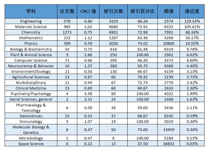 ESI(基本科学指标)基于汤森路透引文索引数据库SCI和SSCI所收录的全球12000种学术期刊的1000多万条文献记录而建立,数据库中更新保持最近10年的文献,所收录的期刊被分为22个学科。由于该数据库具有学科全面、学术影响大、覆盖的国家广泛等特点,已成为当今世界范围内普遍用以评价高校、学术机构、国家、地区国际学术水平及影响力的重要评价指标工具之一,国内教育主管部门也已经开始以此作为评价高校学科发展的指标。