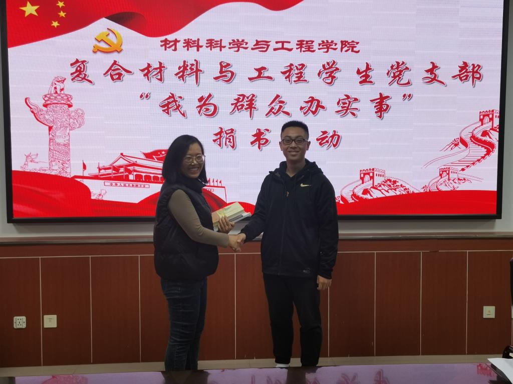 在进行简短的休息后,活动进行第二项。党支部成员积极捐赠自己的书籍,包括各种党史书籍、党建教材、复合材料与工程专业书籍等。本次捐赠共收到党史书籍26本、党建教材13本、复合材料与工程专业书籍108本。