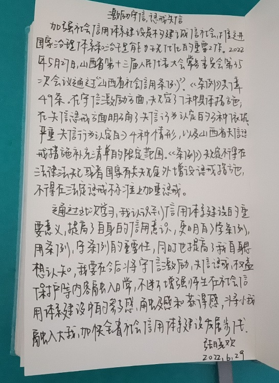 2022年6月17日,我材料成型及控制工程学生党支部组织开展了了学习《山西省社会信用条例》的内容,该条例将于10月1日正式实行,今后,山西省将建立守信激励和失信惩戒措施清单管理制度,让守信者受益、失信者受限。