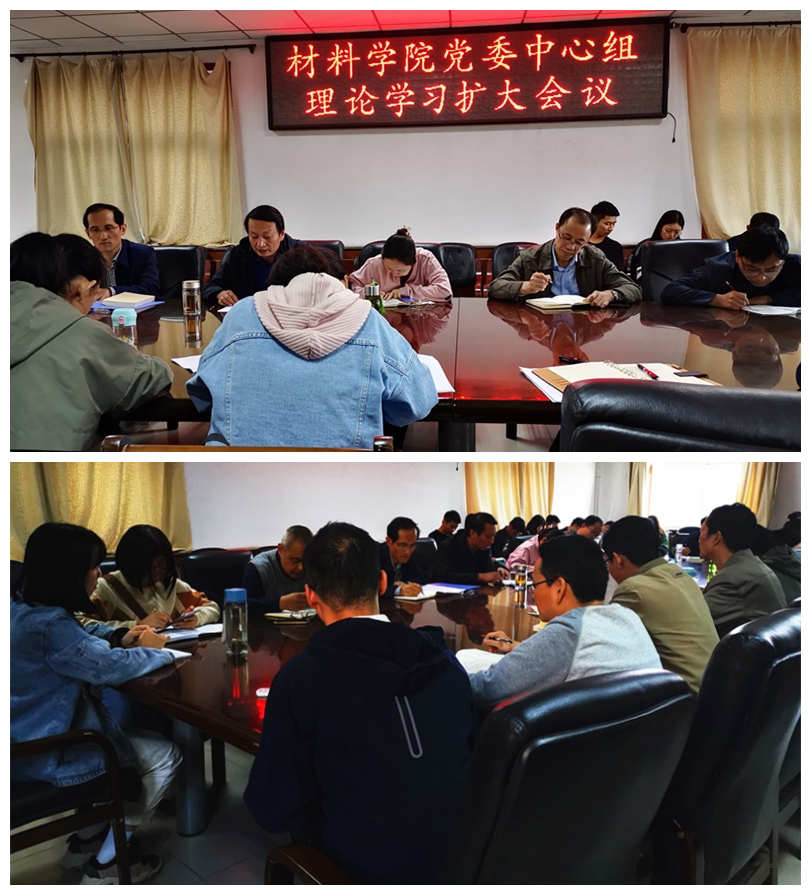 10月8日下午,材料学院党委在笃学楼第一会议室召开了“不忘初心、牢记使命”主题教育专题学习会议。学院党委中心组成员、各支部支委、各学科部主任、党员代表等参加了会议,会议由院党委书记薛亚奎同志主持。