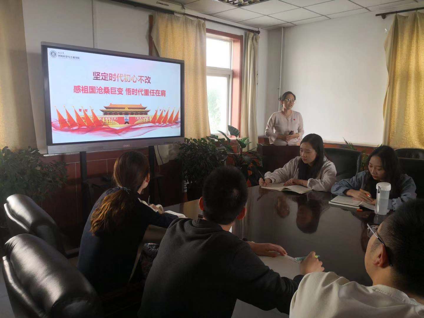 为进一步激发党支部组织活力,增强广大党员的责任感、使命感,结合“不忘初心、牢记使命”主题教育活动安排,10月10日中午,复合材料与工程学生党支部组织开展了主题教育上党课活动。院党委副书记郭云霞以“坚定时代初心不改,感悟祖国沧桑巨变,悟时代重任在肩”为题,为全体党员上了一堂生动的党课。