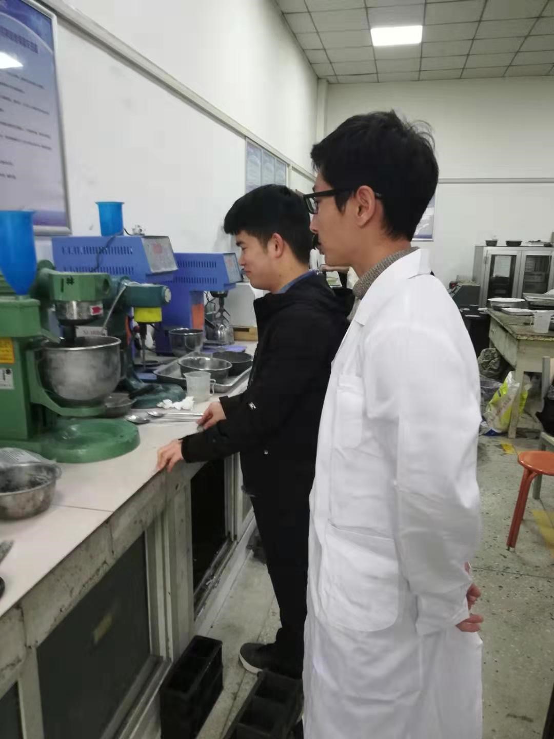 杭德亮同志在中北大学水泥混凝土实验室,帮助老师指导本科专业基础实验,此次试验的主要内容是胶砂、混凝土成型实验。