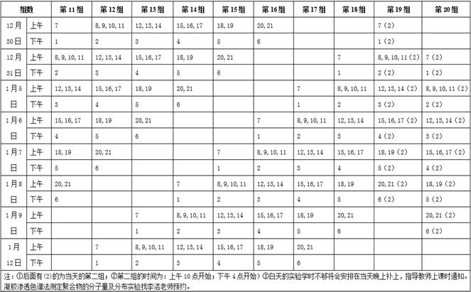 2014/2015第一学期高分子材料与工程大型实验安排