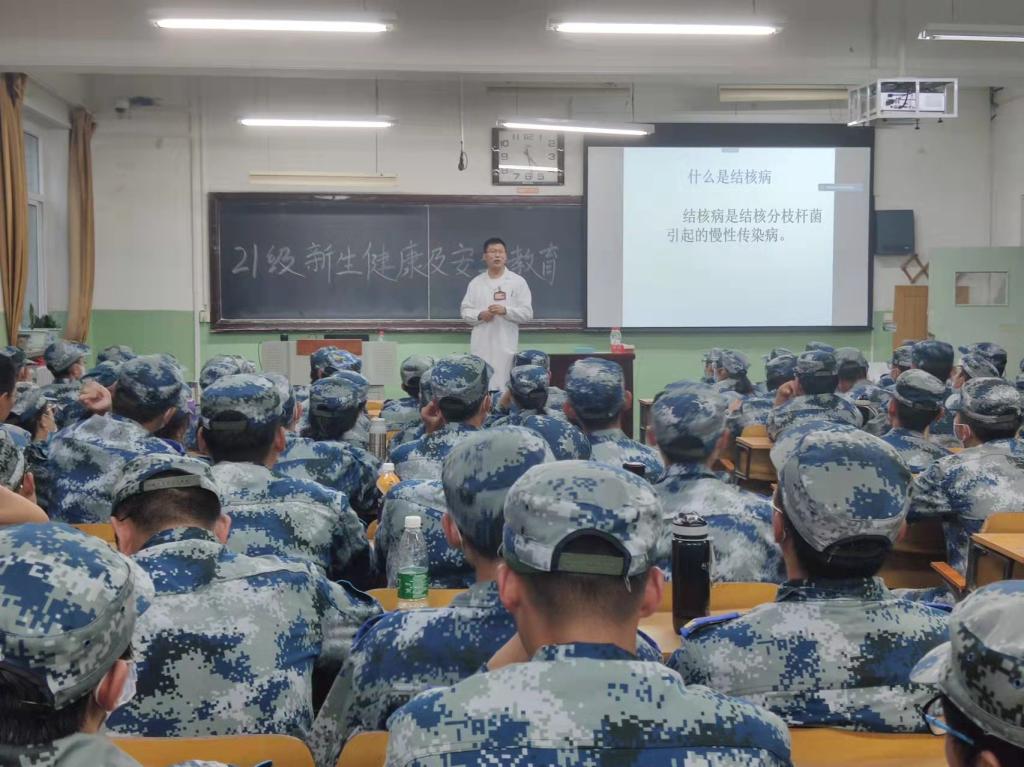 01202H等5个教室成功举办21级新生电信诈骗和传染病预防健康教育讲座,学生科科长殷炳叶、军训教官及2021级574名全体新学生参加了本次教育讲座。