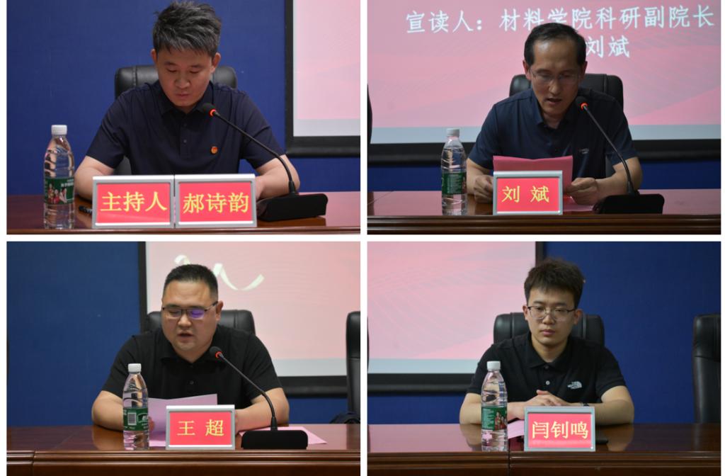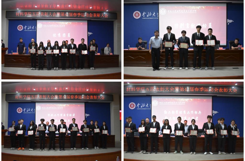 为学习贯彻习近平新时代中国特色社会主义思想,赓续五四精神,学习先进典型,激励广大青年挺膺担当,全面推进学院高质量发展,5月14日下午,材料科学与工程学院在瑾瑜国际会议中心隆重召开五四表彰大会暨第42届春季运动会表彰大会。院党委书记廖海洪、院长王强、科研副院长刘斌、教学副院长王超、青年教师代表闫钊鸣、院团委书记郝诗韵、复合材料与工程学生党支部书记李静出席表彰大会。