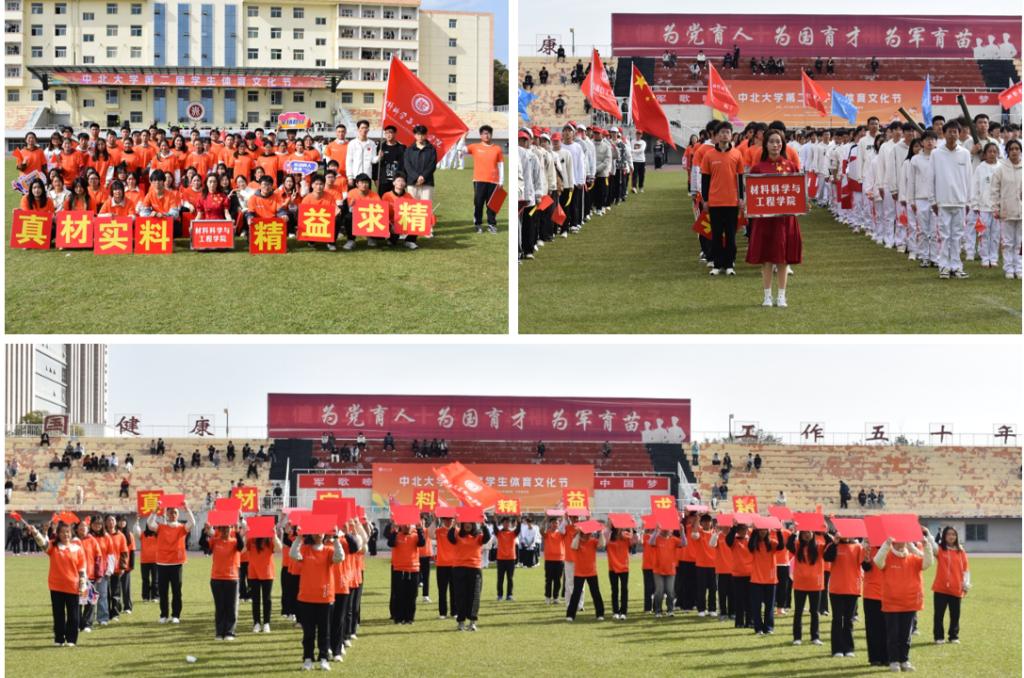 各院的运动员方阵身着各式服装,充分诠释了当代大学生的青春活力,他们在欢快的音乐声与热烈的欢呼声中相继入场,开幕式表演随着音乐的节奏在草坪中央有序进行。各院节目丰富多彩,现场观众掌声不断,运动员青春洋溢,尽展中北学子风采。材料学子,身着统一服装,充满激情,昂扬向上,在队列的变换中,向大家展示着“真材实料,精益求精”院训,他们活力四射,队伍整齐划一,尽展材料学子青春风采。