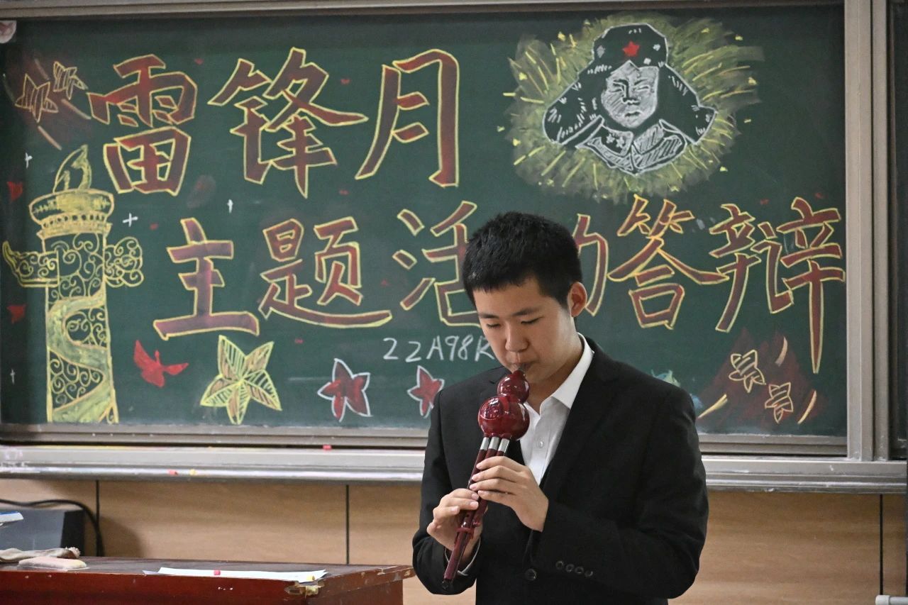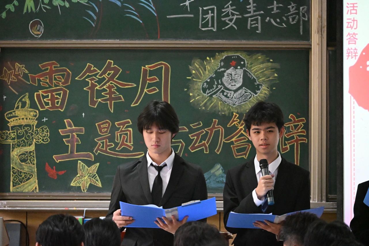 各班组织委员有序上台进行答辩,同时向评委们分发相关材料。各班通过精心准备的PPT展示雷锋月期间的志愿活动,与此部分班级还准备了实践中制作的小视频和实物,生动记录实践过程中的点点滴滴。