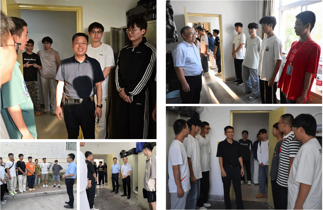 “家乡是哪里的?”“路上还顺利吗?”“对学校的住宿条件还满意吗?”“生活上有没有什么困难?”每走进一间宿舍,院领导都与新生进行亲切交谈,细致地询问同学们的入校感受、适应情况和生活需求,耐心解答着同学们的疑问。