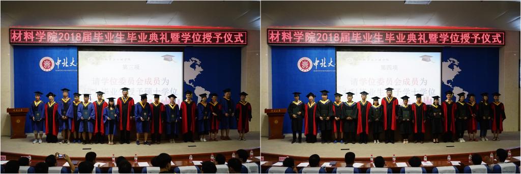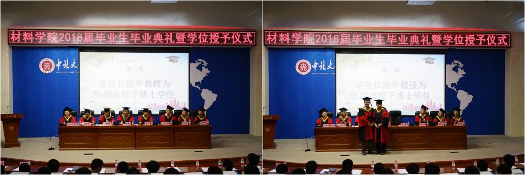 毕业典礼在雄壮的国歌声中拉开帷幕。院党委书记薛亚奎教授宣读 《关于表彰2018届优秀毕业生及综合素质奖学金获得者的决定》,同时院领导亲自为优秀毕业生颁发荣誉证书。表彰过后,毕业研究生代表张鹏飞同学与本科毕业生代表吉志洁同学依次发言,表达了对母校多年来的培养表示衷心的感谢,并会牢记自己是一名材料人;牢记恩师们的教诲,牢记“真材实料,精益求精”的院训。随后在校生代表景心怡同学发言,言语中饱含对毕业生的不舍与祝福,并表示他们会向我院的优秀毕业生学习,不愧为中北学子,为材料学院争光。