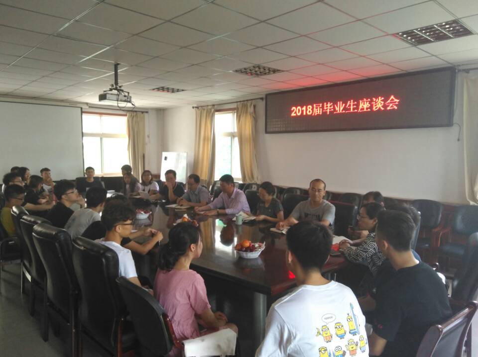 6月22日下午三时,材料科学与工程学院在院办二层会议室召开了2018届毕业生座谈会。院党委书记薛亚奎、副书记郭云霞、副院长李迎春、各学科部主任、副主任、科室负责人与毕业生代表相聚一堂,共叙大学四年的学习生活和成长感悟,共同探讨学院的发展建设。