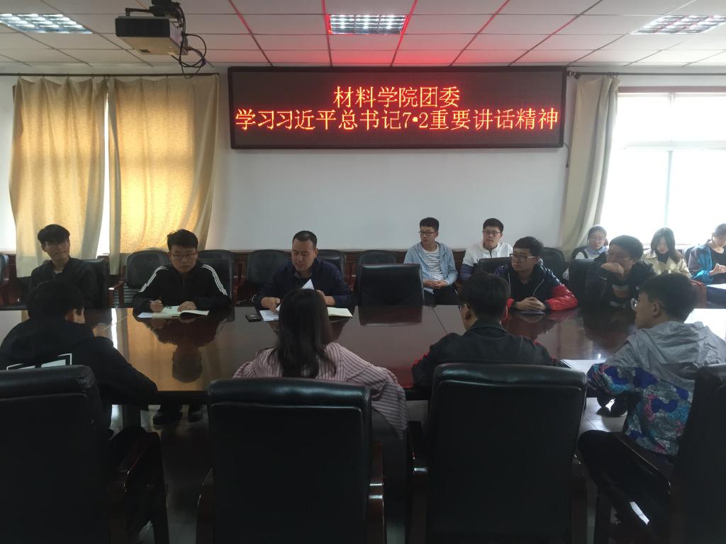 2018年9月26日12时40分,材料科学与工程学院于院办二层会议室举行了深入学习领会习近平总书记“7.2”重要精神和学习宣传贯彻团的十八大精神会议。本次会议的主讲人是院团委书记毋登辉,参加本次会议的人员有院团委各部门代表和除大一以外的各年级团支书。