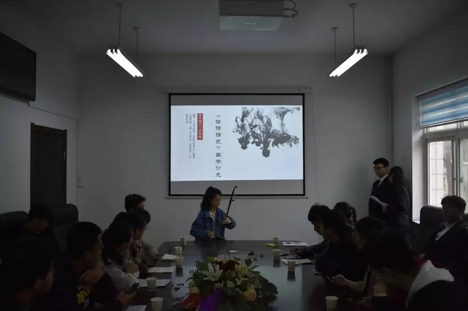 经过激烈的讨论与依次的发言后,本次活动邀请了女生部副部田芳园进行二胡曲——《天行九歌》的表演,冲淡了同学们些许的困意,重新将大家的积极性调动了起来。随后,进入了分享自己喜爱的诗的环节,经过短暂相互讨论过后,同学们纷纷开始发言,个个出口成章,将自己心中的诗人形象活灵活现的展现在了我们每一个人面前。
