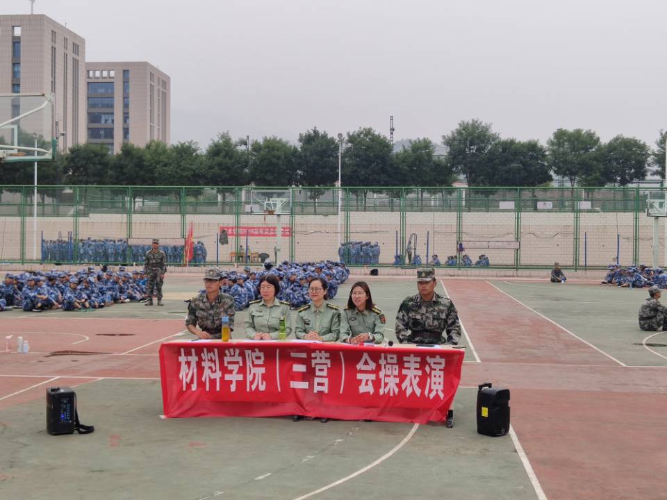 7月16日上午九时,材料学院在东区篮球场举行2018级学生军训会演暨拉歌比赛,指导员殷炳叶、王敏、贾越,副营长刘瑞峰、各连长出席了本次比赛。