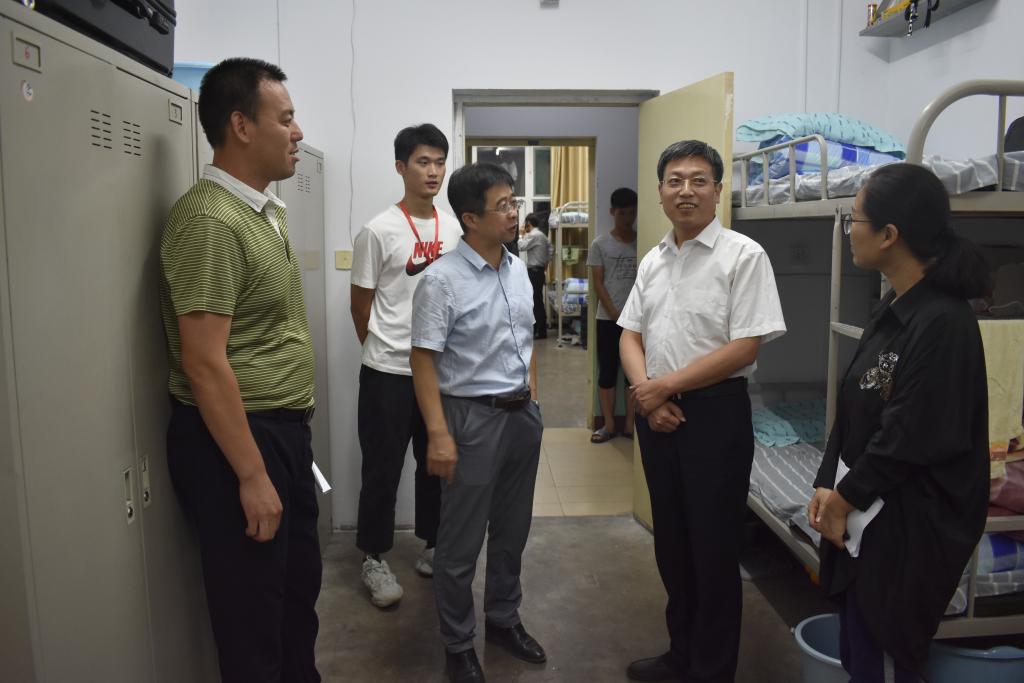 朗朗金秋,丹桂飘香,9月7日晚,19级迎新工作顺利完成。副校长潘晋孝在院党委书记薛亚奎、院长侯华的陪同下深入新生宿舍看望19级本科生并向新生表示慰问和关怀。院党委副书记郭云霞、教学副院长李迎春、科研副院长刘斌、全体辅导员及新生班主任一同来到新生宿舍。