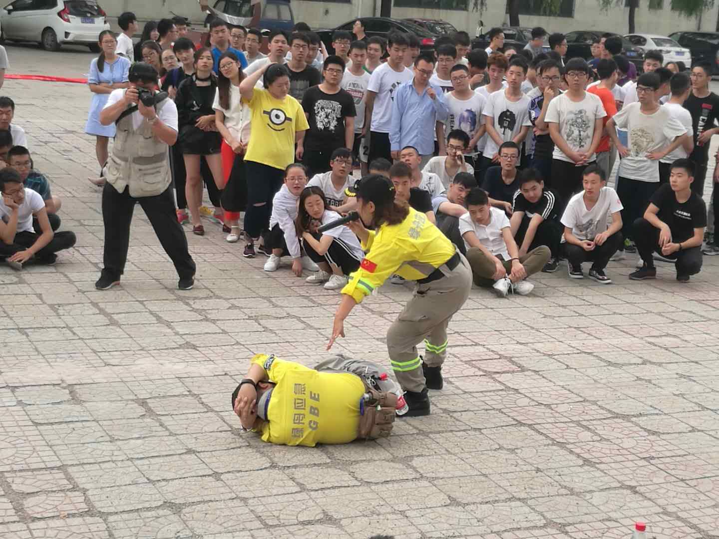 全体师生撤离到操场后,绿舟应急救援中心老师对本次疏散演练及时进行了点评,本次演练共疏散师生500余人,从宿舍楼到疏散集结地共用时3分钟,此次演练顺利通过。