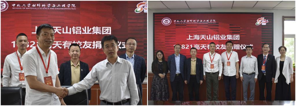 2021年5月19日上午,上海天山铝业集团捐赠仪式于材料学院会议室举行,14821班高天有校友捐赠了高纯度金属铝,上海校友会秘书长王永柏、高天有的代表司旭东先生、校友办主任张胜利、院领导及部分师生参加了此次捐赠仪式,仪式由院党委副书记郭云霞主持。