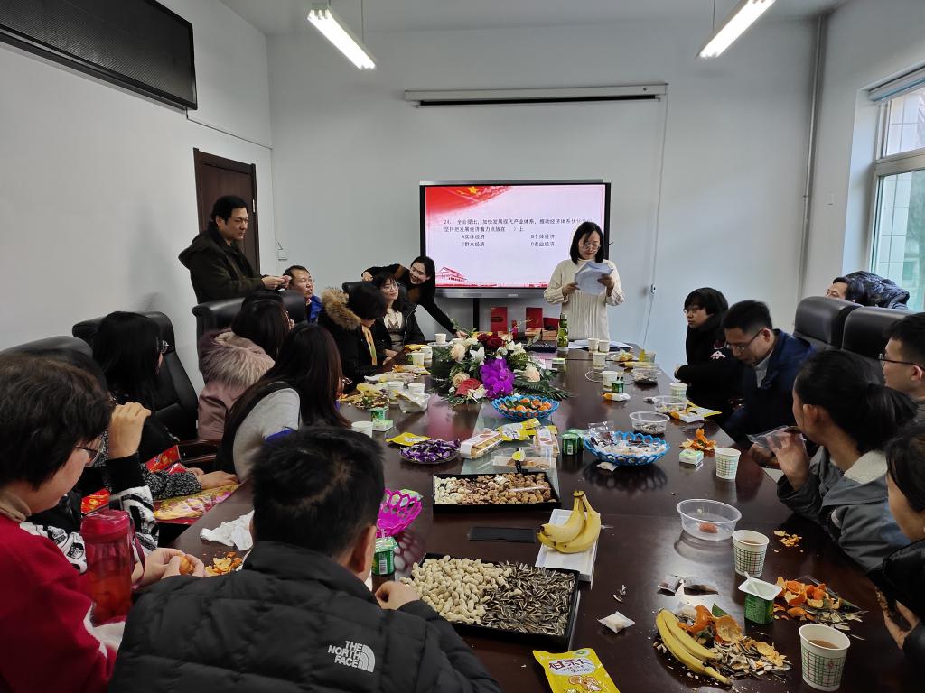 下午3点整,有奖竞答活动正式开始。主持人殷炳叶老师在轻松欢快的乐曲中宣读了本次活动规则,老师们热情高涨积极抢答,在欢声笑语间将整个活动引向了高潮。本活动以“学习强国”学习平台知识为主要内容,共设必答题和抢答题两个环节,包含了政治理论、党风廉政、科学常识、古诗词以及党的十九大精神等方面的知识点。此次活动加深了教工对党的理论知识和中国文化的认识,更好地将学习教育真正融入到我院教工的日常生活中,使我党的创新理论深入人心、落地生根。