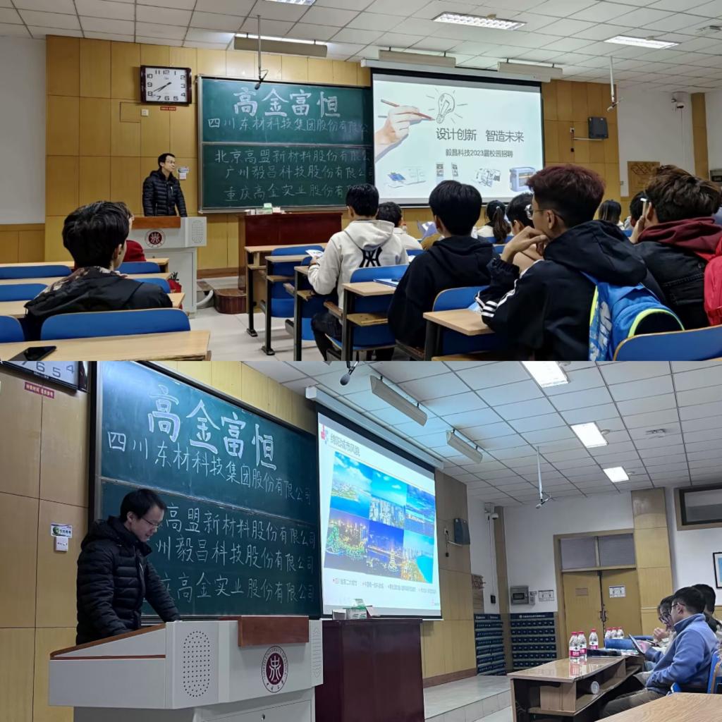 本次会议主要内容包括对四川东材科技集团有限公司、北京高盟新材料股份有限公司和广州毅昌科技股份有限公司在内的三家公司进行企业介绍和岗位需求介绍。会议开始由郭云霞书记进行开场讲话,接着由高金富恒集团的集团代表对上述三家企业进行一一介绍。