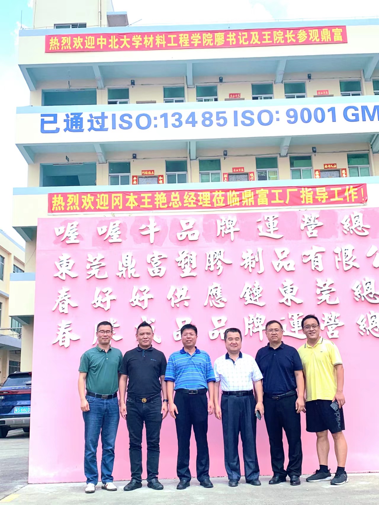 材料科学与工程学院廖书记和王院长首先来到东莞鼎富塑胶制品有限公司参观访问,企业负责人就本企业发展状况、技术需求、人才需求以及校企合作设想进行交流发言。