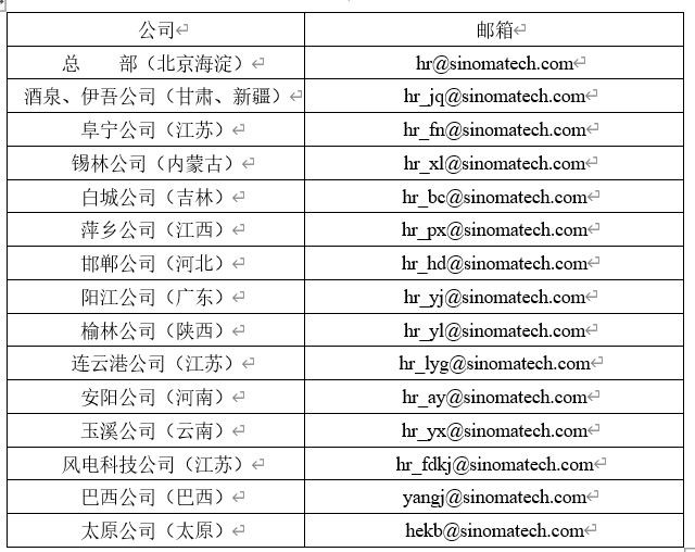 工作地点:甘肃酒泉、吉林白城、江苏阜宁、内蒙古锡林郭勒、江西萍乡、河北邯郸、内蒙古兴安盟、新疆伊吾、陕西榆林、广东阳江、江苏连云港、云南玉溪、河南安阳