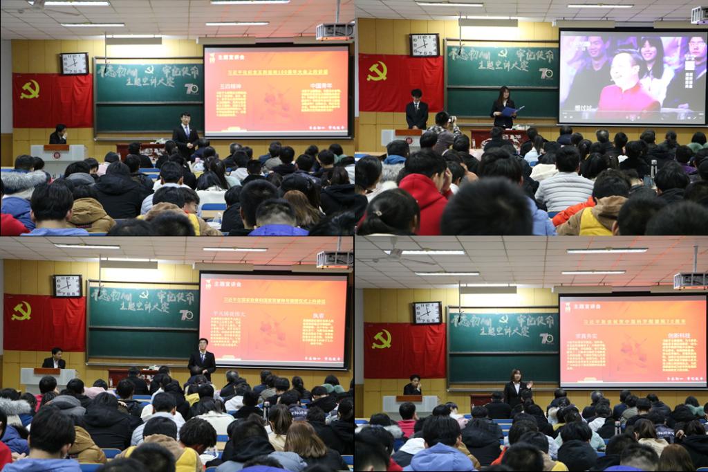 为进一步践行“不忘初心、牢记使命”主题教育,促使广大党员深刻掌握习近平新时代中国特色社会主义思想理论精髓,12月1日,材料科学与工程学院党委举办了“不忘初心、牢记使命”为主题的政治理论宣讲大赛。校党委常委、宣传部部长薛实军老师、校学生工作部部长李俊华老师、材料学院党委书记薛亚奎老师、材料学院党委副书记郭云霞老师以及各党支部书记出席大赛并担任比赛评委。