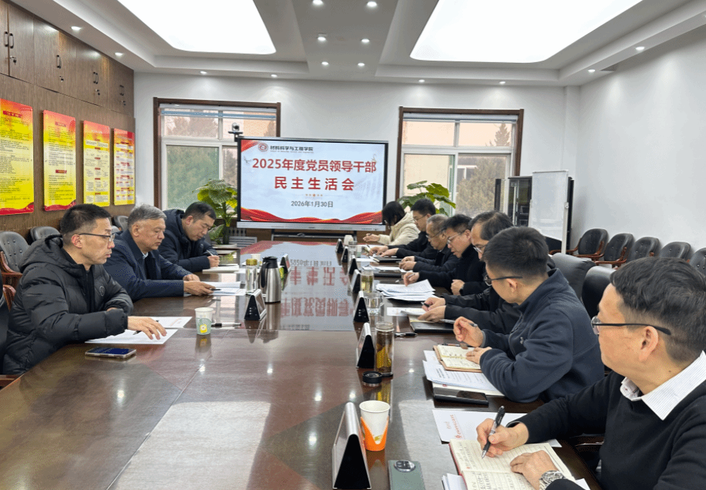 1月30日,材料学院党委2025年度领导干部民主生活会在笃学楼会议室召开。会议以学习贯彻习近平新时代中国特色社会主义思想和党的二十届四中全会精神、锲而不舍落实中央八项规定精神、推进作风建设常态化长效化为主题,深入开展批评和自我批评,以优良作风推动学院事业高质量发展。副校长赵贵哲莅临指导,校督导组有关同志到会督导,学院领导班子全体成员参加会议,会议由院党委书记廖海洪主持。